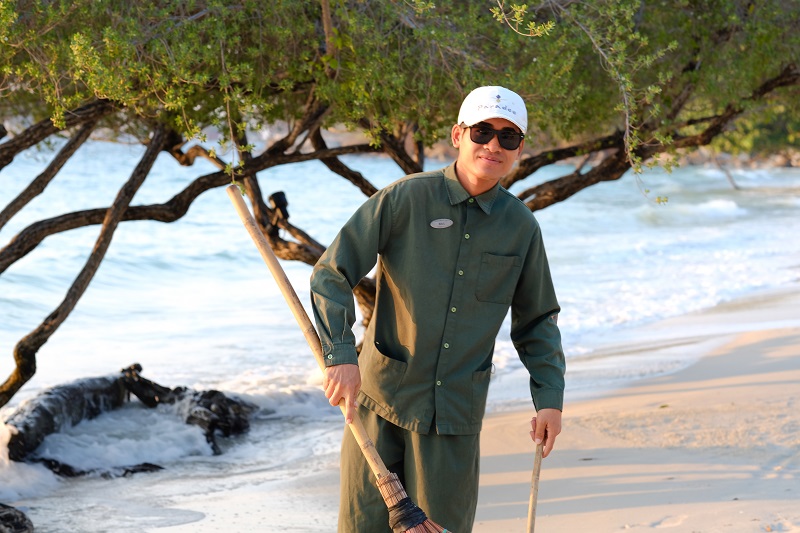 お掃除のお兄さんに挨拶「コップンカ~♪」