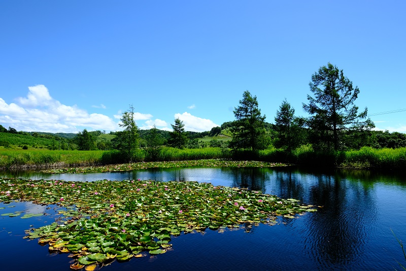 炎天下32度。睡蓮の花が頑張って咲いてました♪
