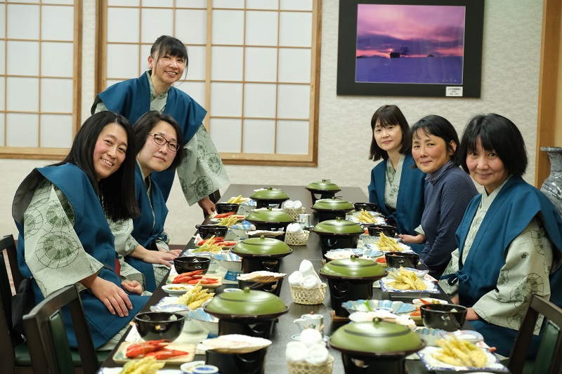 女将「アツアツ食べて!あ。まだ揃ってない!電話して呼んで!」