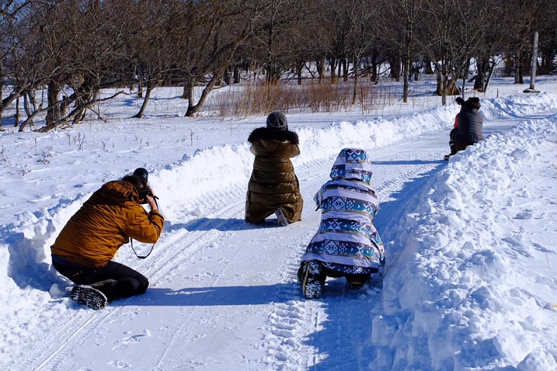 我が家の前の豪雪地帯に一同が集合