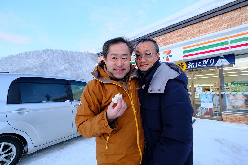 参加者のT原さん(右)と一緒に夕張市のコンビニで朝食をget☆