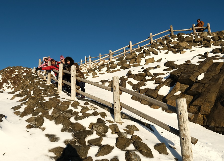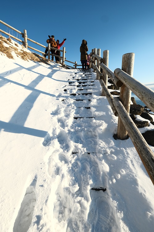 急な階段を上りますよ~滑って転ばないでね~♪