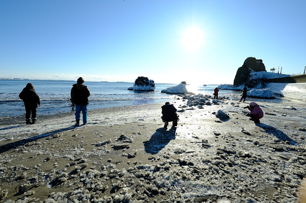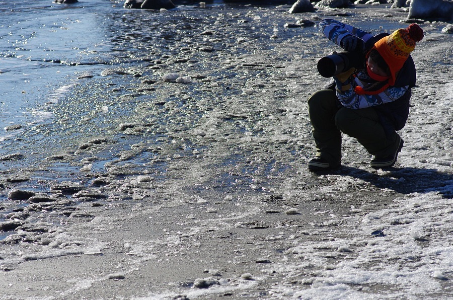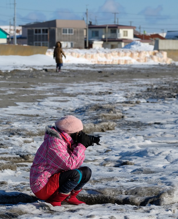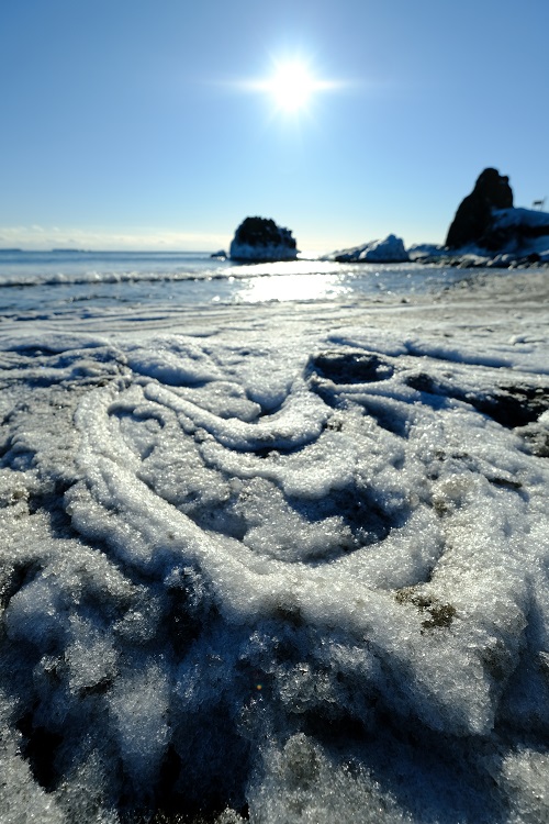 少し移動して、今度は凍った砂浜で撮影です☆