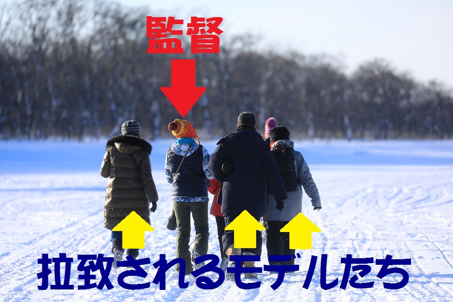 モデルたちを喰った監督は、今度はヤラレ役を買って出ます・笑