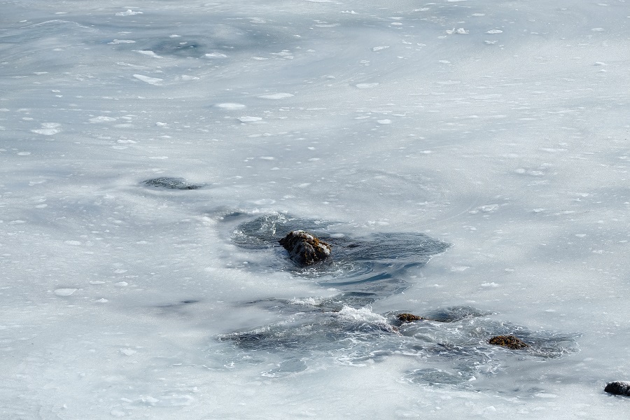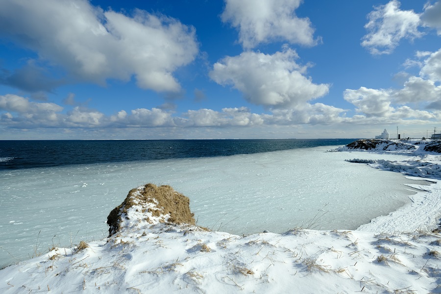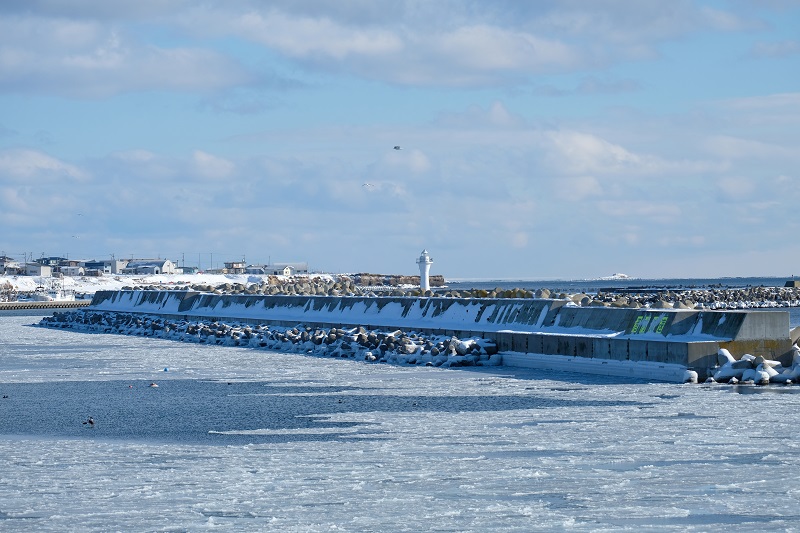 海が半分凍ってる~!