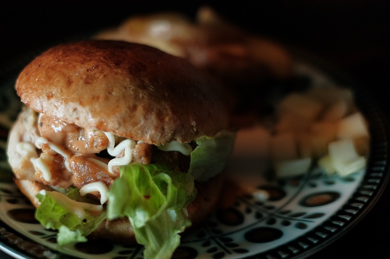 「スペルト小麦で作ったバーガーがあります」