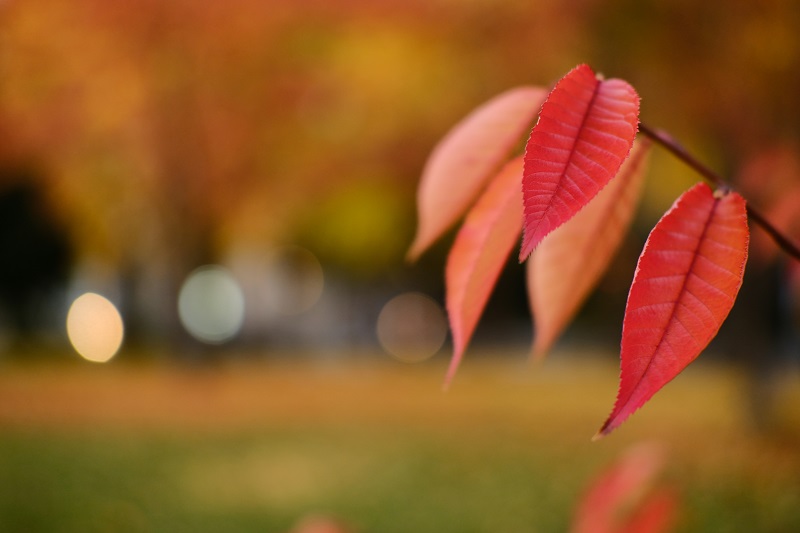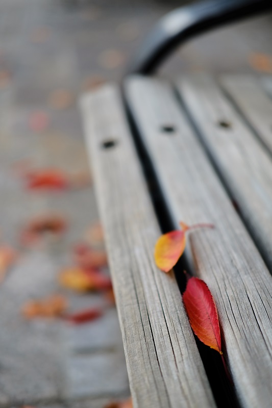 ベンチのこの赤い葉…これはなんという葉でしょうねぇ~