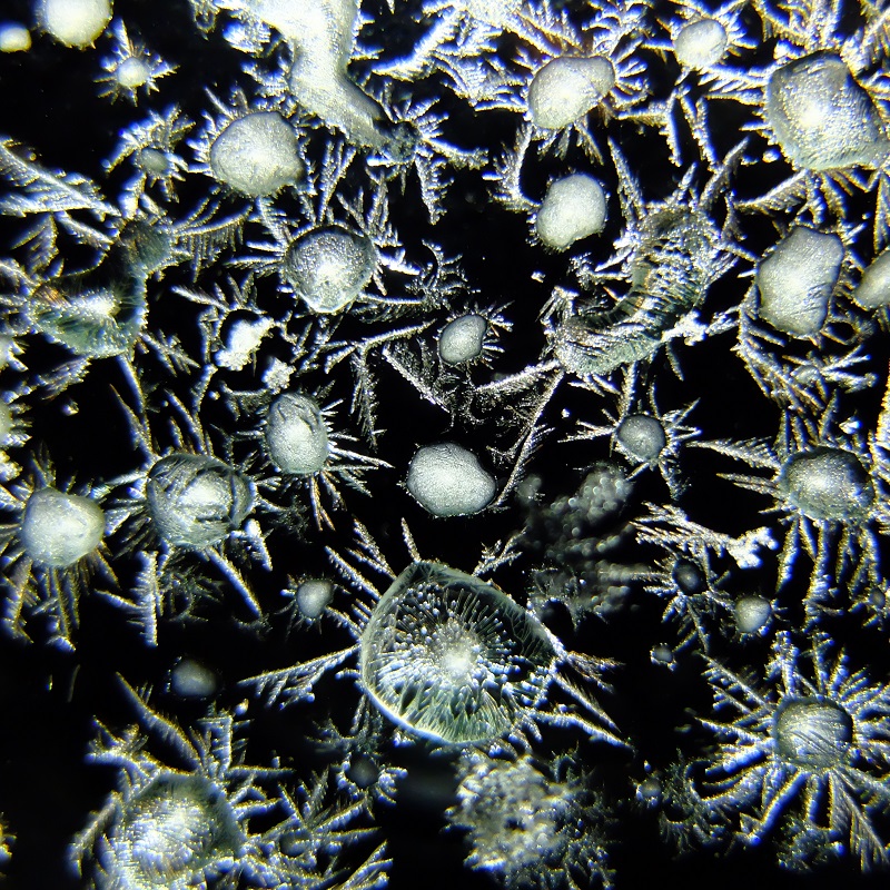 すっごいシバレた日に、コープ南の二階の駐車場、入り口の窓と(笑)