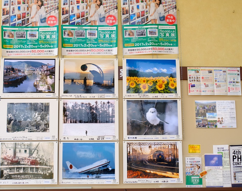 コープ南店、パン屋さん側の入り口休憩所の写真コーナーは