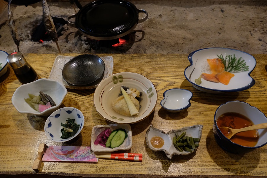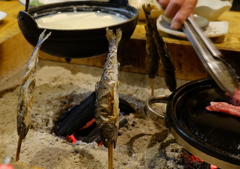 山女魚の囲炉裏焼きと温泉豆腐(^^)ウマウマ
