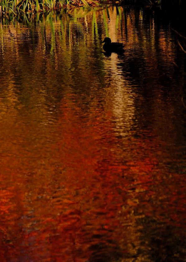 池に浮かぶ紅葉