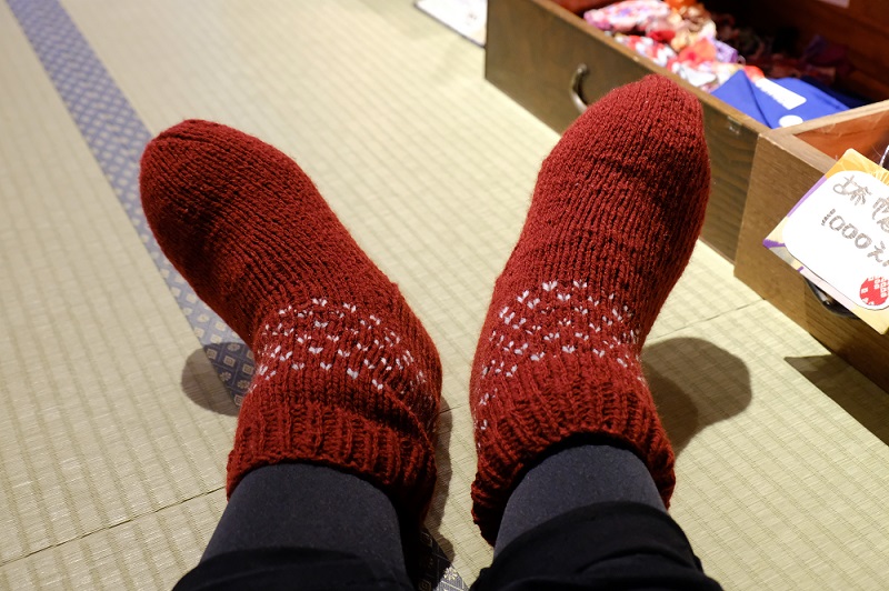 靴下カイロに毛糸の靴下です(;=▽=;)