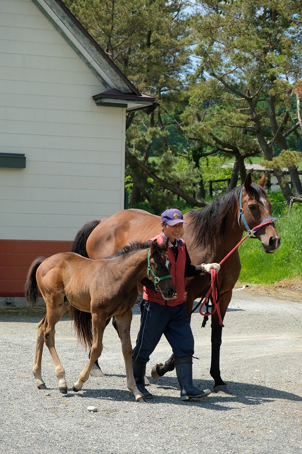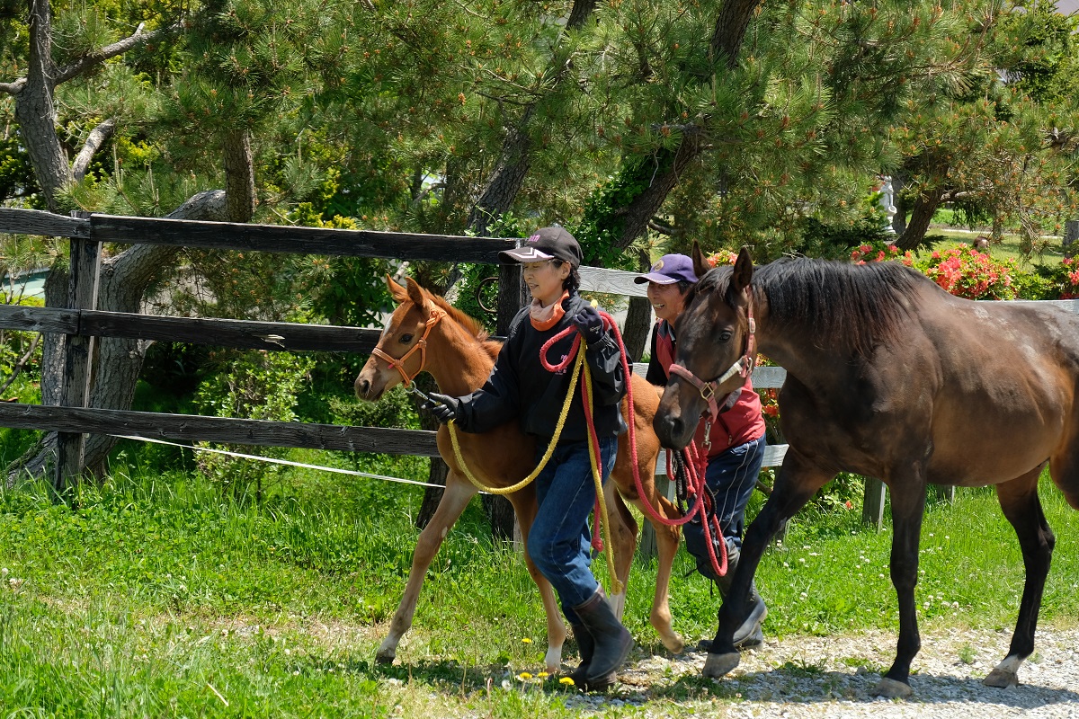 高村さんご夫妻が、親子のお馬さんを放牧していきます(^o^)
