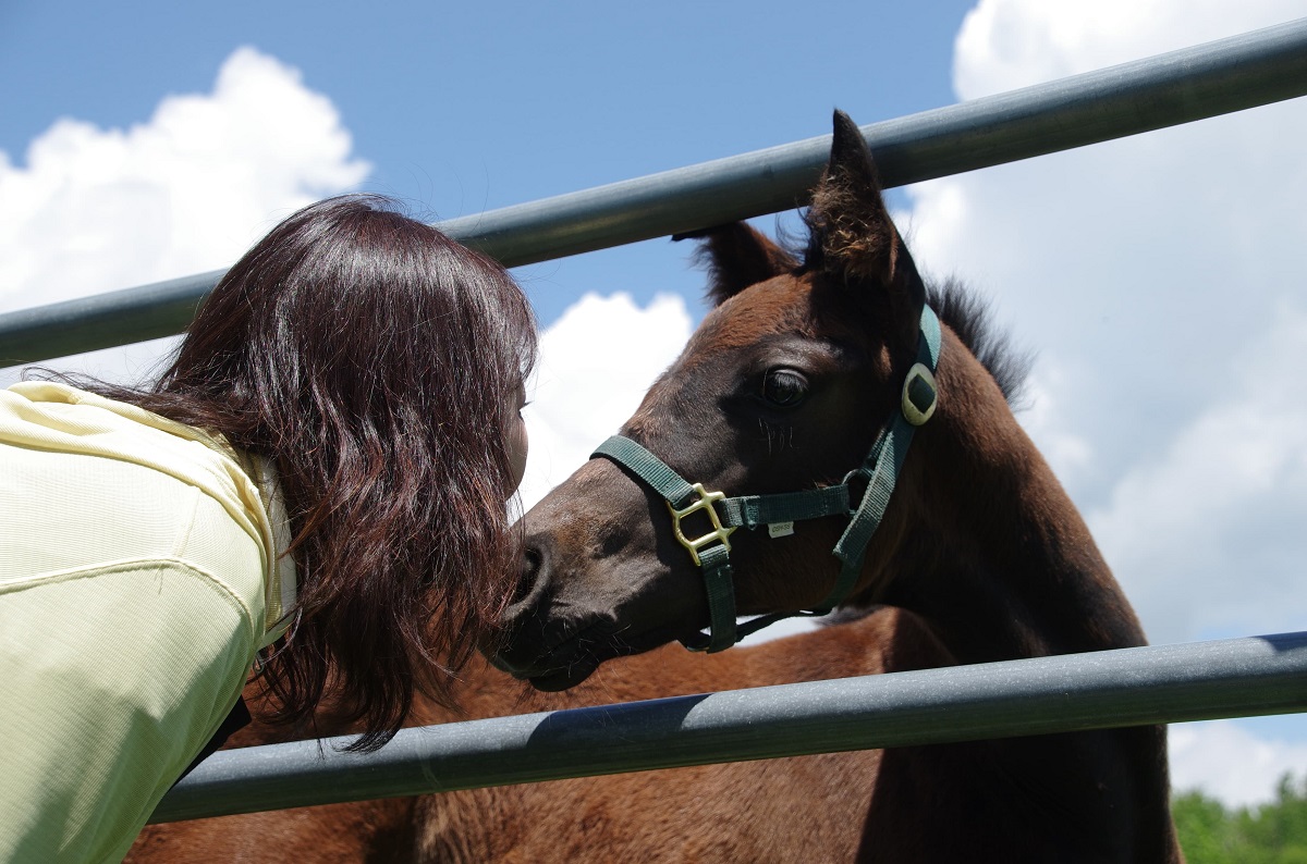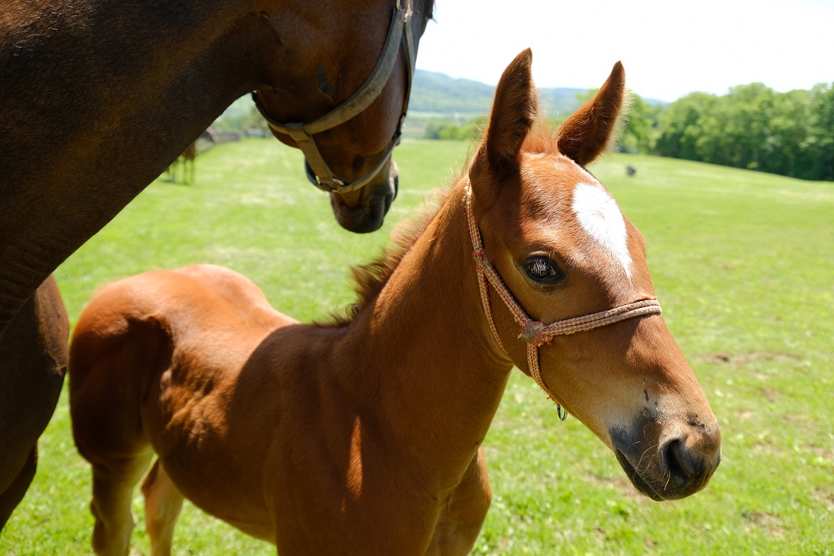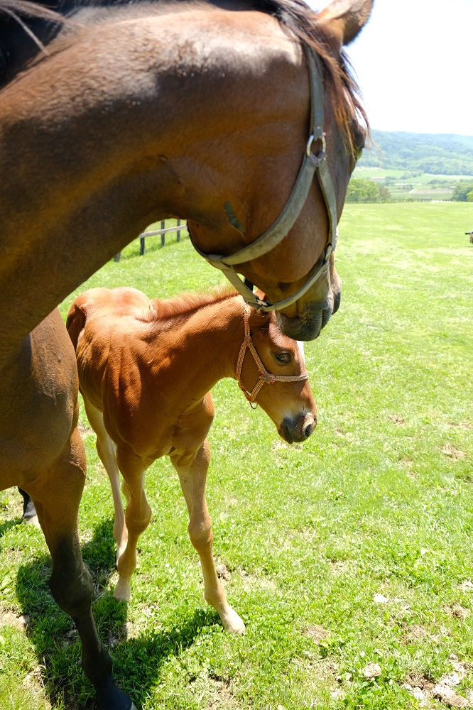 仔馬ちゃんもそれに安心したかのように、寄ってきます